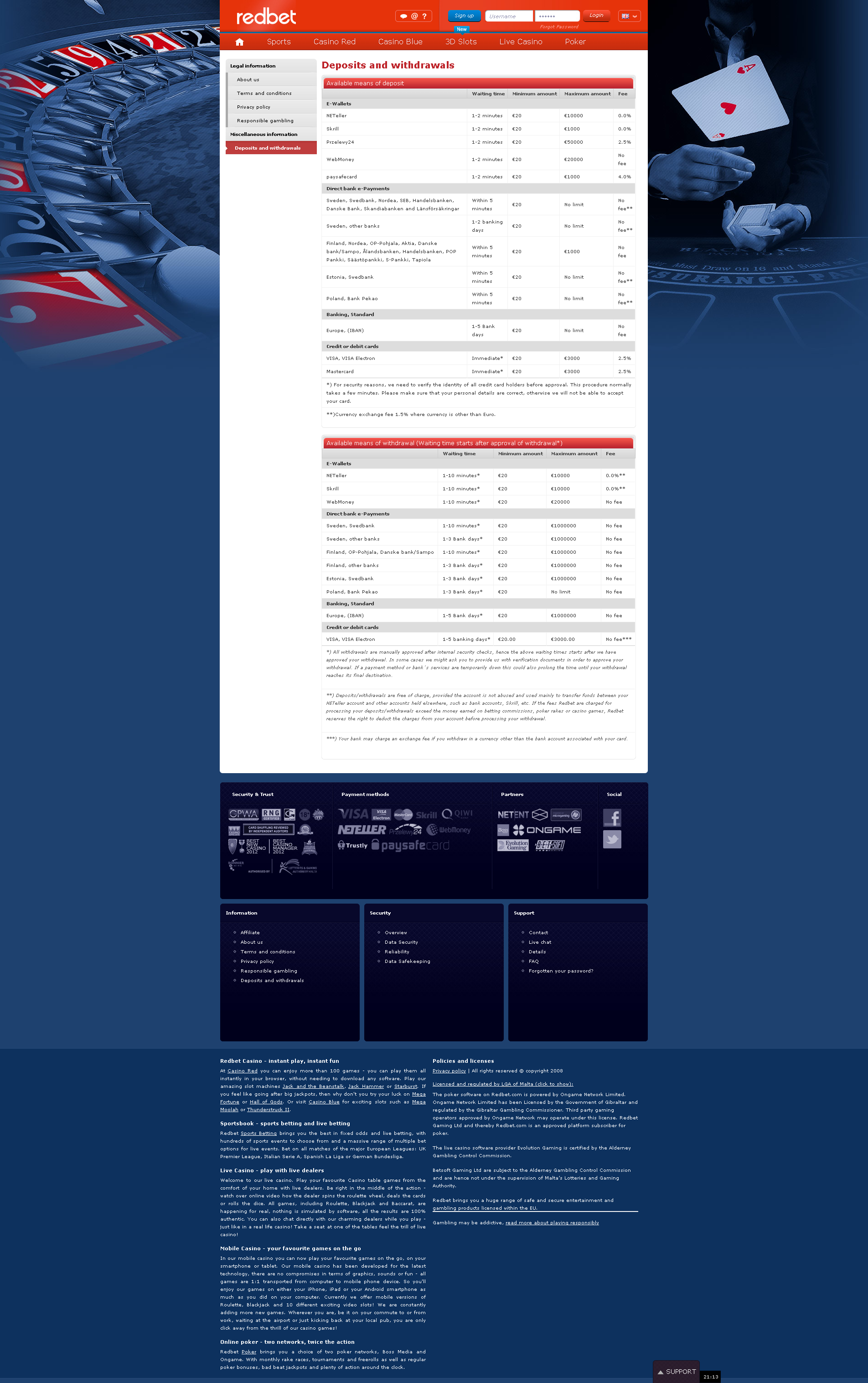 Redbet casino handles payments and withdrawals very fast, also you can expect account verification process being very fast and usually just a couple of hours !